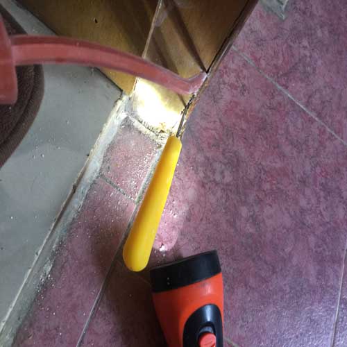 二、在发现白蚁危害的处,将木制门窗框按一定间隔钻孔灌注药液,周边土壤同时喷洒药液,使木材及土壤都含有一定的毒素,白蚁活动触毒取食都会中毒而死亡。